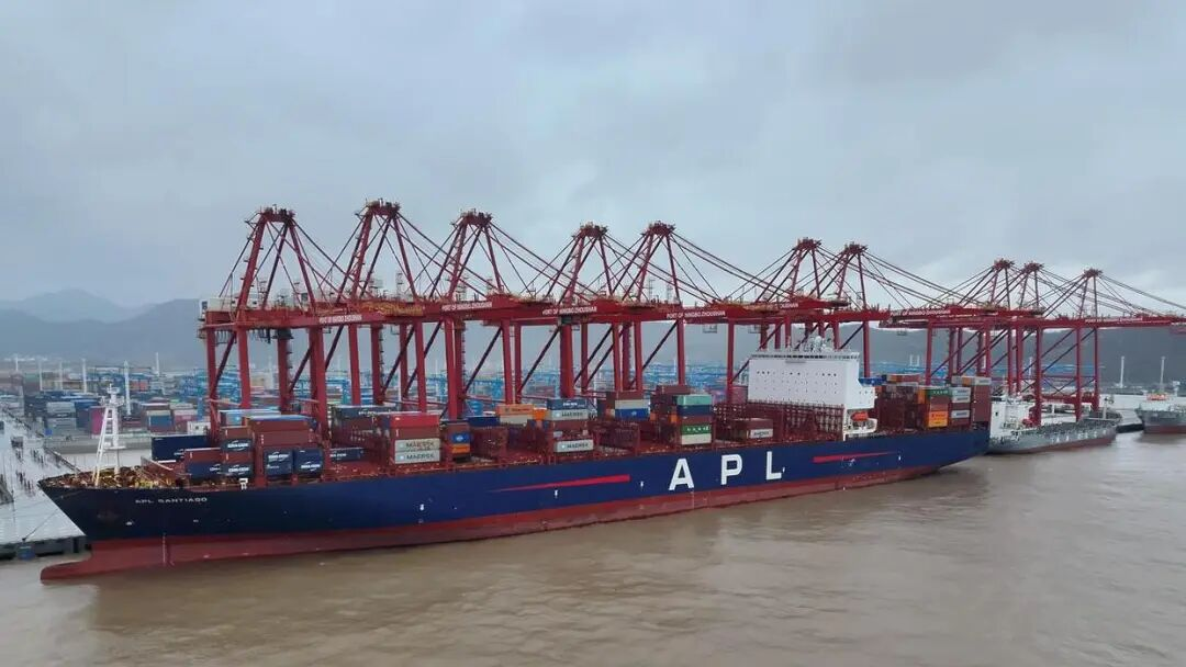 2026年1月1日,新加坡籍集裝箱輪"達飛圣地亞哥"輪穩(wěn)穩(wěn)靠泊寧波舟山港甬舟集裝箱碼頭4號泊位,成為該港本年度迎來的首艘"海上巨無霸"。這艘船長328米、載重噸超11.7萬噸的巨輪,為港口新年運營拉開序幕,計劃在港區(qū)停靠15小時,完成約2000個自然箱的裝卸作業(yè)。