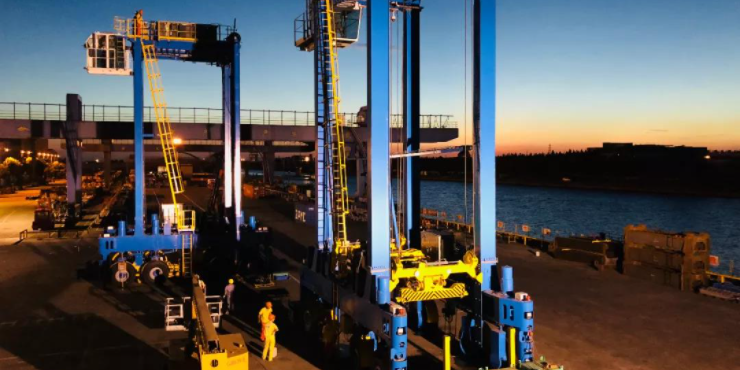 集裝箱跨運車作業(yè)對提高碼頭前沿設備的裝卸效率十分有利。它還有個“雙胞胎弟弟”——穿梭機,二者有著幾乎一樣的外形,只不過一個側重碼箱子,一個擅長搬箱子。由于集裝箱跨運車和穿梭機在集裝箱移交過程中不需要同時應用到橋吊和拖車。相反,橋吊可直接將集裝箱放在地上等待穿梭機接走,不用浪費時間將集裝箱準地對好位置放在拖車上,還省去了等待卡車運輸?shù)臅r間,這可以讓橋吊始終以最佳狀態(tài)運行,提高作業(yè)效率。目前,全球現(xiàn)有1000多座集裝箱碼頭,超過半數(shù)的海外集裝箱港口在碼頭水平運輸環(huán)節(jié)使用了跨運車。