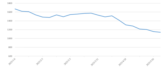 內(nèi)貿(mào)海運市場運量低迷,本期(2023年5月20日至5月26日)中國內(nèi)貿(mào)集裝箱運價指數(shù)同比大幅下跌