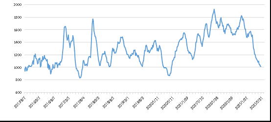 另外,福建指數(shù)報(bào)收1420點(diǎn),環(huán)比上漲124點(diǎn),漲幅9.57%;華東指數(shù)報(bào)收1358點(diǎn),環(huán)比下跌37點(diǎn),跌幅2.65%;山東指數(shù)報(bào)收995點(diǎn),環(huán)比持平。